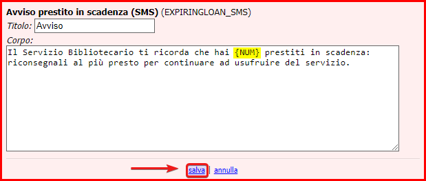 Nel caso di modifica, la sezione contenente il modello viene bordata di rosso. È possibile modificare il Titolo, l'eventuale Oggetto (se si tratta di email) e il Corpo del messaggio.