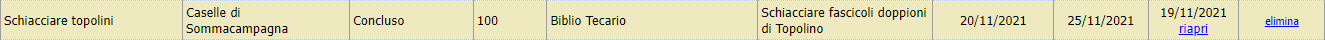 Se sono visibili i task in stato di concluso, nella colonna completato sarà presente un link Riapri rimettendo il task in gestione e resettando la data e la percentuale di completamento.