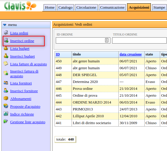 Inserisci ordine