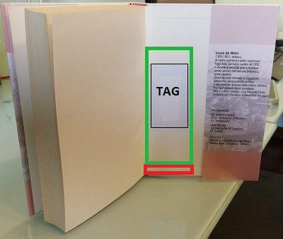 È opportuno non posizionare il TAG sempre alla stessa altezza, ma un po’ casualmente lungo la linea del dorso, in modo da evitare il più possibile l’eventualità che due libri posti sulla tavoletta (postazione staff) abbiano i TAG esattamente sovrapposti, situazione che potrebbe renderne difficoltosa la lettura.