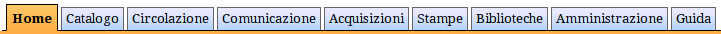 Permette di andare rapidamente alla pagina della biblioteca utilizzata attualmente dall'utente. Inoltre, nel caso in cui l'utente sia stato abilitato ad operare in più biblioteche, il menu a tendina consente di scegliere per quale biblioteca svolgere le azioni.