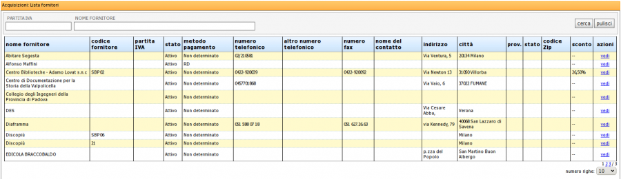 Cliccando sul link Vedi viene visualizzata la pagina di inserimento del fornitore selezionato ed è possibile modificarne i dati.