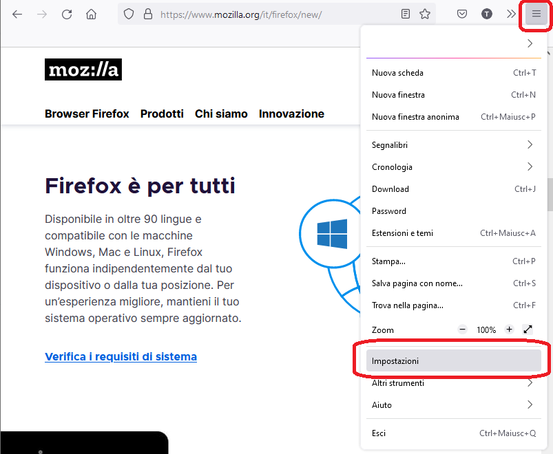 Di seguito è mostrato come impostare questa opzione per il browser Firefox; per un browser differente, si considerino come traccia aiutandosi con la guida del proprio browser.