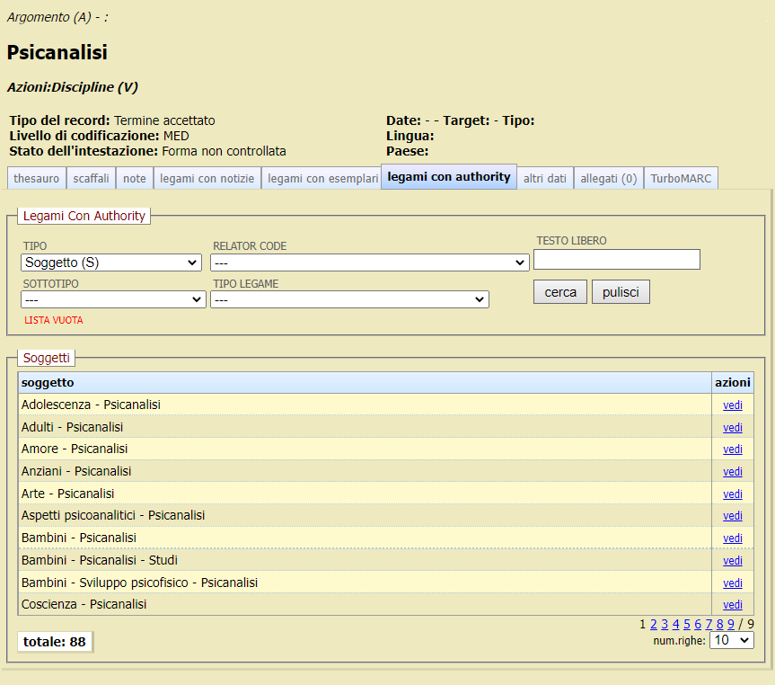 Se si clicca sulla sottosezione legami con authority e si filtra la lista dei risultati per Soggetti,