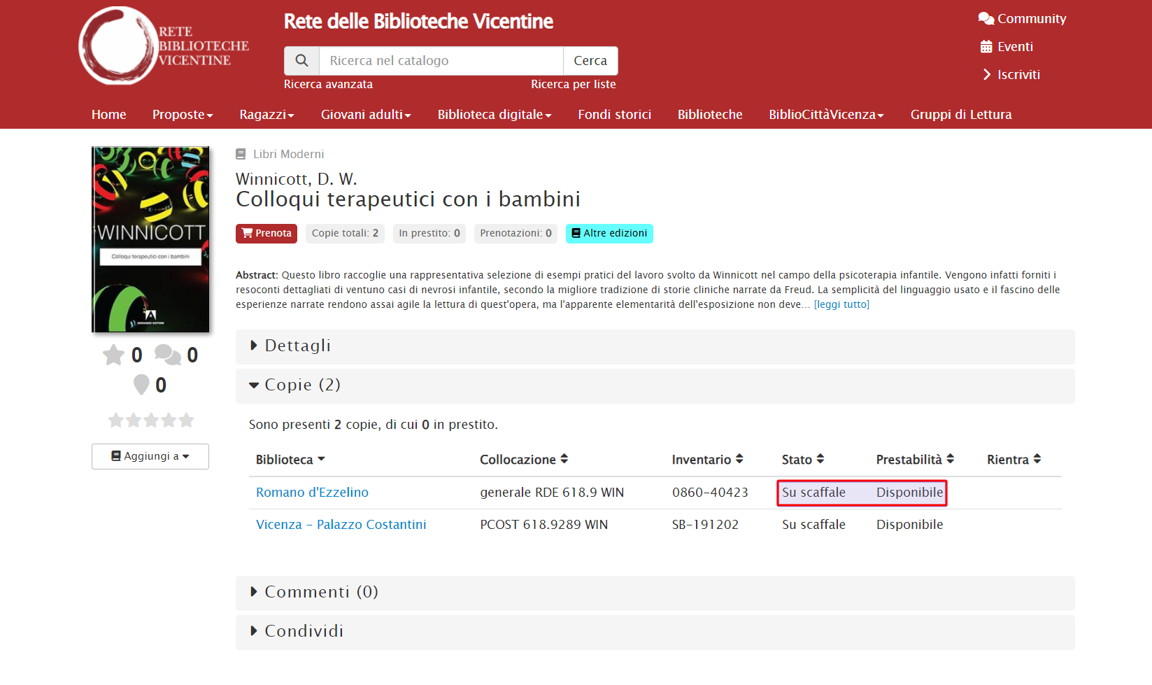 L’esemplare è ora nello stato pronto al prestito. Quindi:
