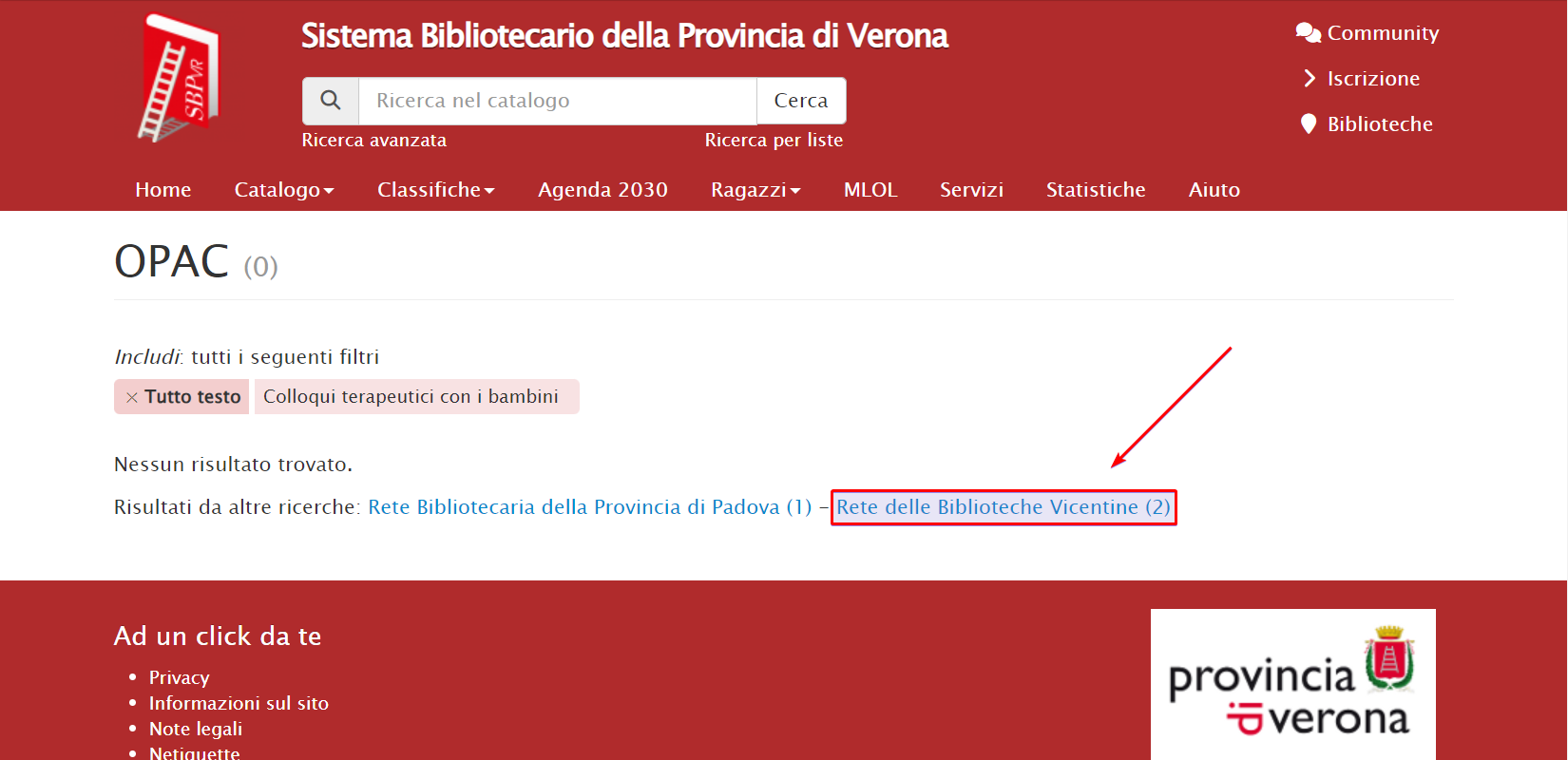 2. Nel mio OPAC non trovo il libro che cerco, ma provo a cliccare sul link “Risultati da altre ricerche”