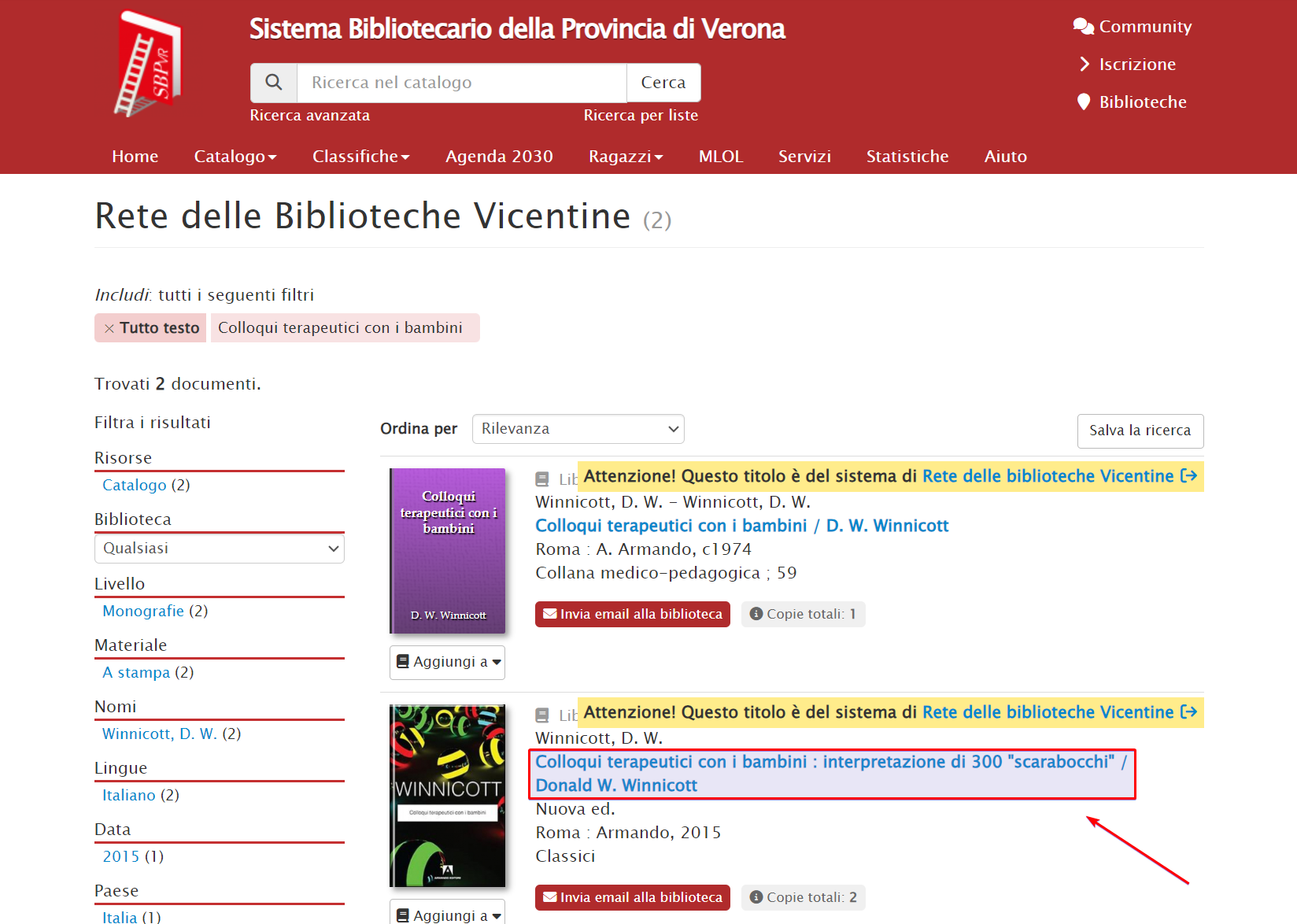 1. Cerco nel mio OPAC Colloqui terapeutici con i bambini