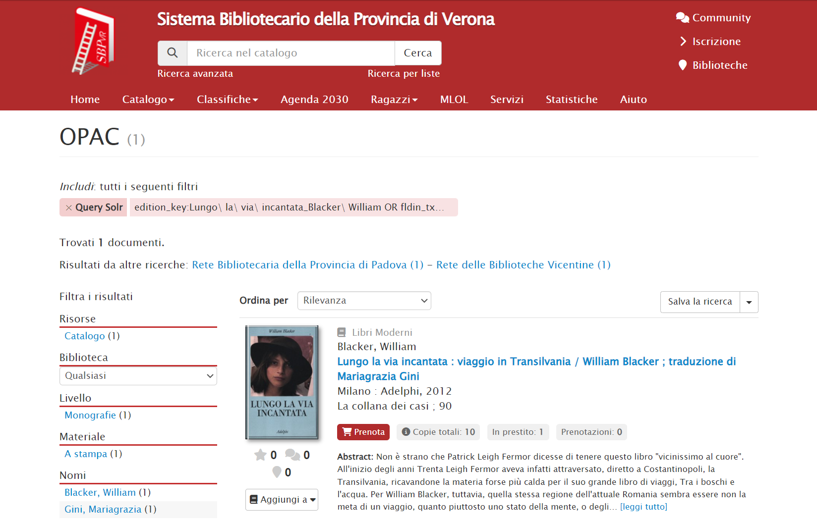 Da ricerca catalogo, esegui la ricerca del libro e identifica l’esemplare per cui è stata fatta la richiesta, clicca infine l’azione prenota-questa-copia.