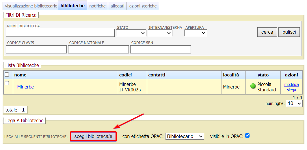 Effettuata l’operazione, il nuovo legame compare all’interno della lista biblioteche.