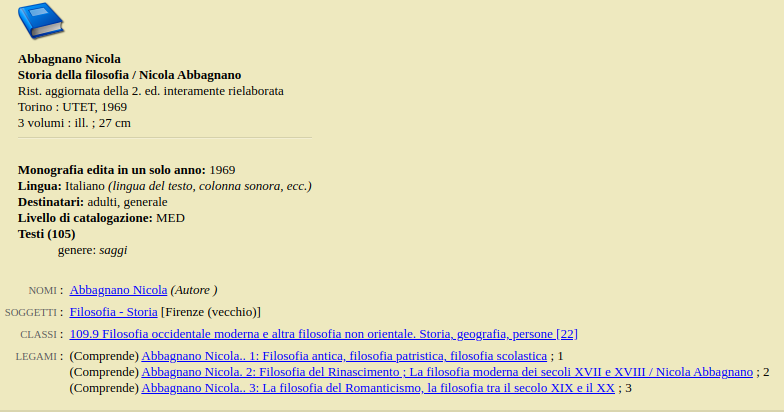 il trattamento delle opere: collegando le authority opera, associate ai rispettivi contenuti delle unità (per esempio l’opera di un film) e corredate dagli eventuali legami con autori, classi e soggetti o parole chiave, è possibile fornire le informazioni necessarie.