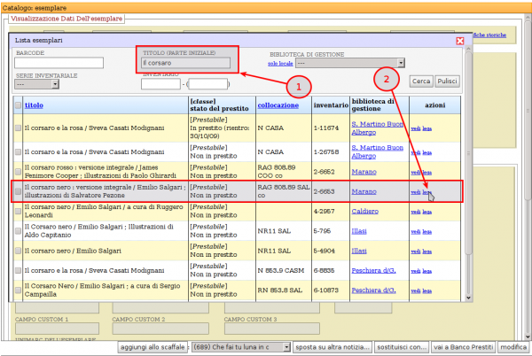 Si apre a questo punto un altro popup dove è possibile ricercare l'esemplare corretto che sostituirà l'attuale. Quando appare l'elenco degli esemplari, scegliere l’esemplare e cliccare su lega.