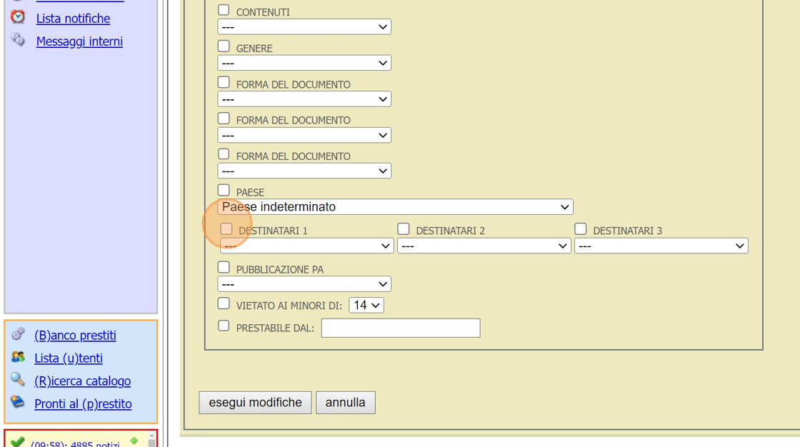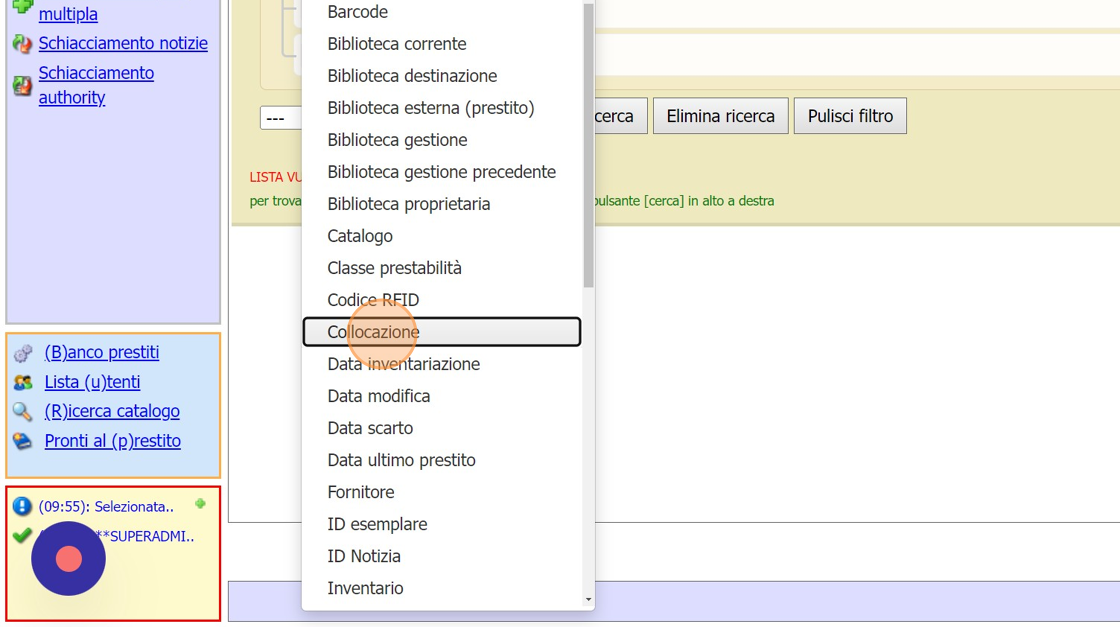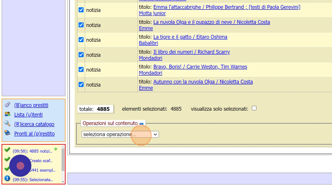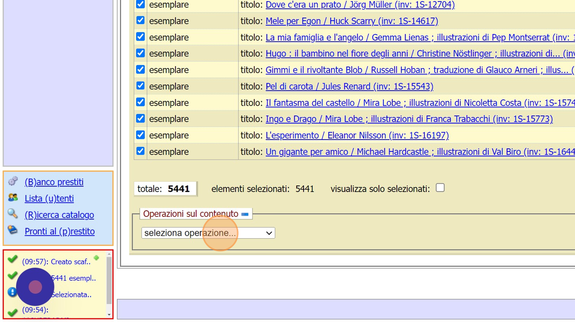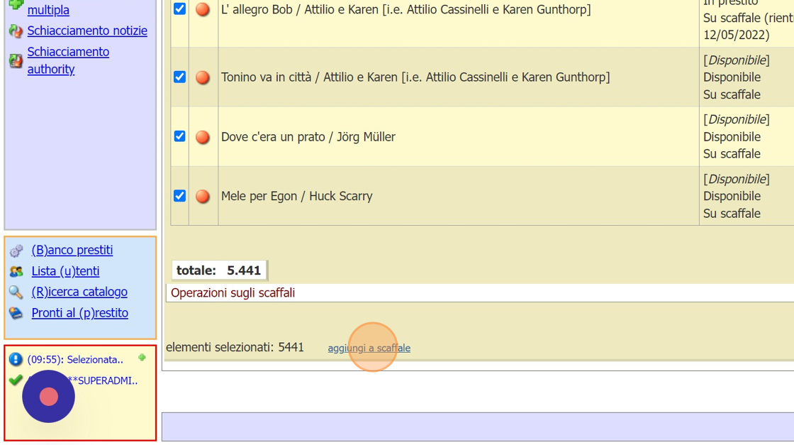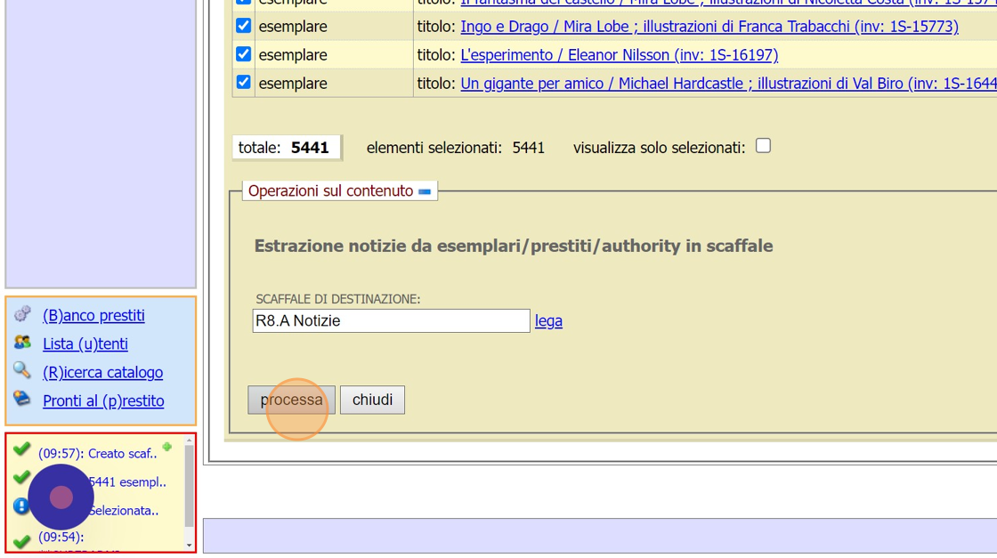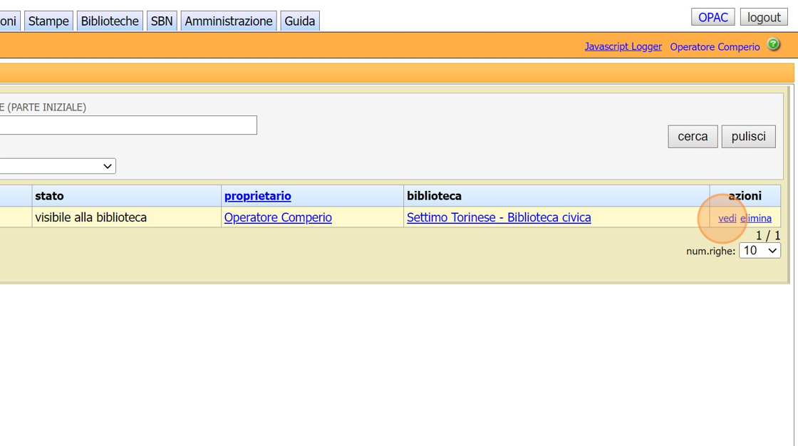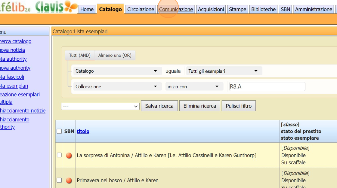 16. Individua il primo scaffale creato, quello con il titolo uguale al valore della ricerca senza la parola Notizie (controlla che nella colonna ogg. contenuti ci sia scritto esemplare tra parentesi)*