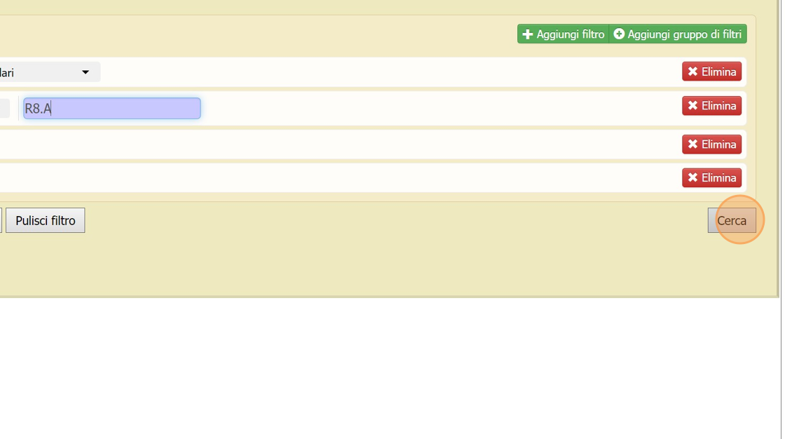 6. Inserisci il valore nel campo a testo libero (es. "R8.A") e clicca su Cerca