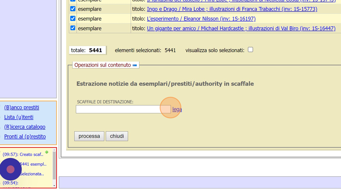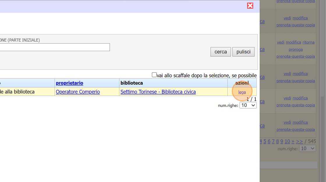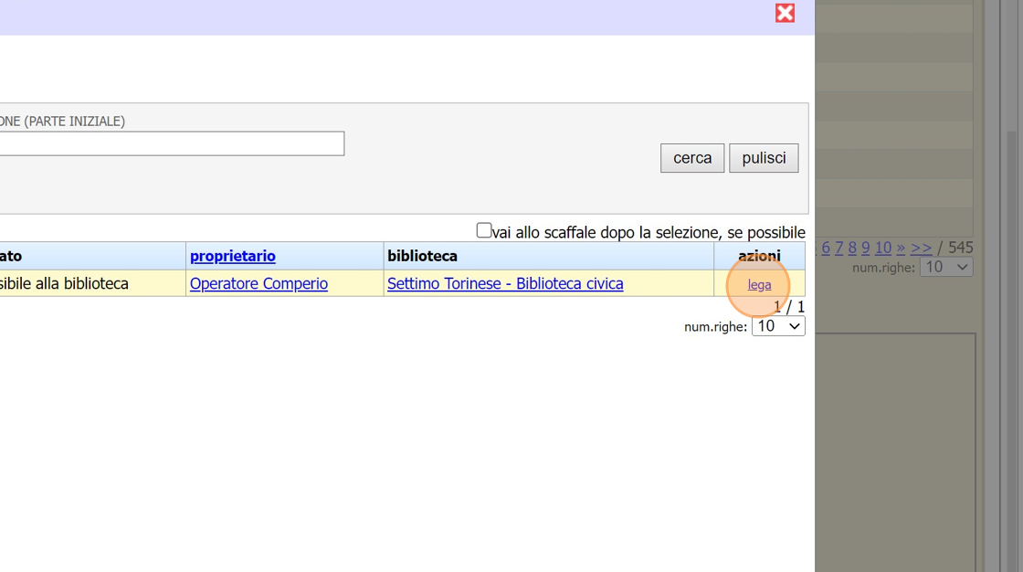 21. Individua il secondo scaffale creato (con nome uguale al valore della ricerca più Notizie es. "R8.A Notizie") e clicca lega