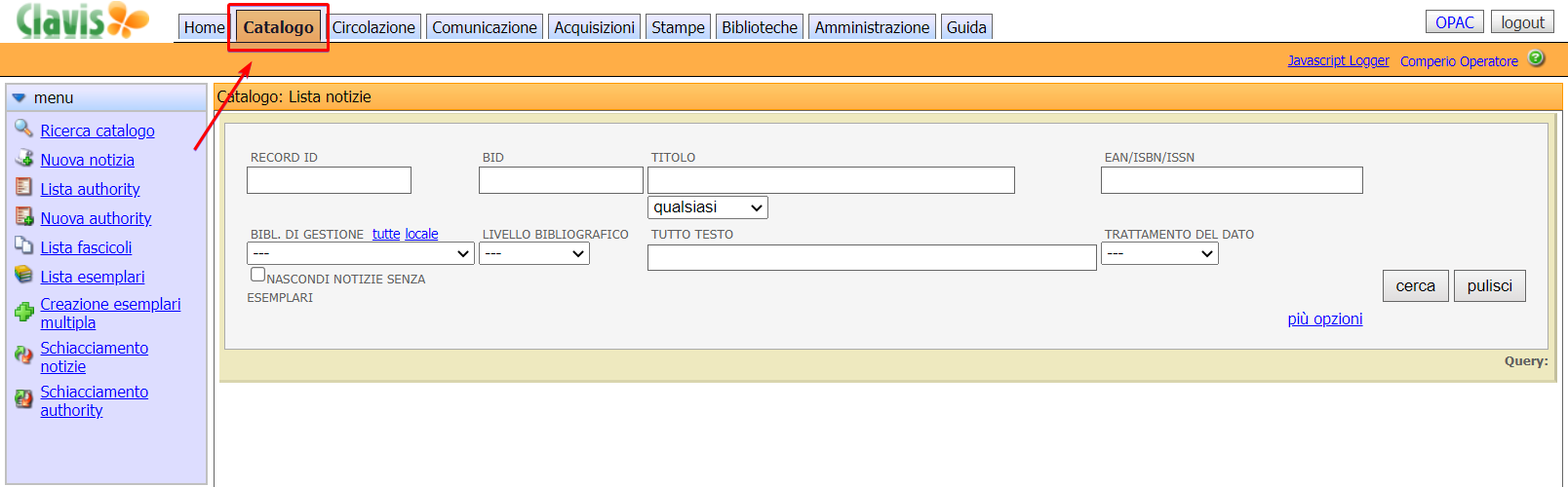nascondi notizie senza esemplari: funzionalità che consente di nascondere le notizie prive di copie, utile nel caso lo scopo della ricerca sia effettuare un prestito;