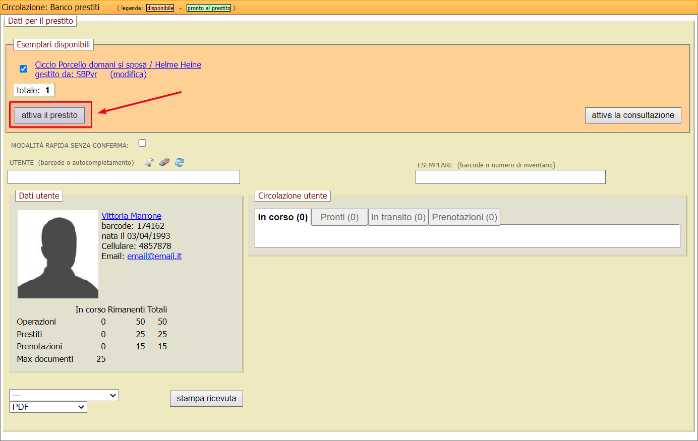 Per attivare il prestito è sufficiente cliccare il pulsante Attiva il prestito.