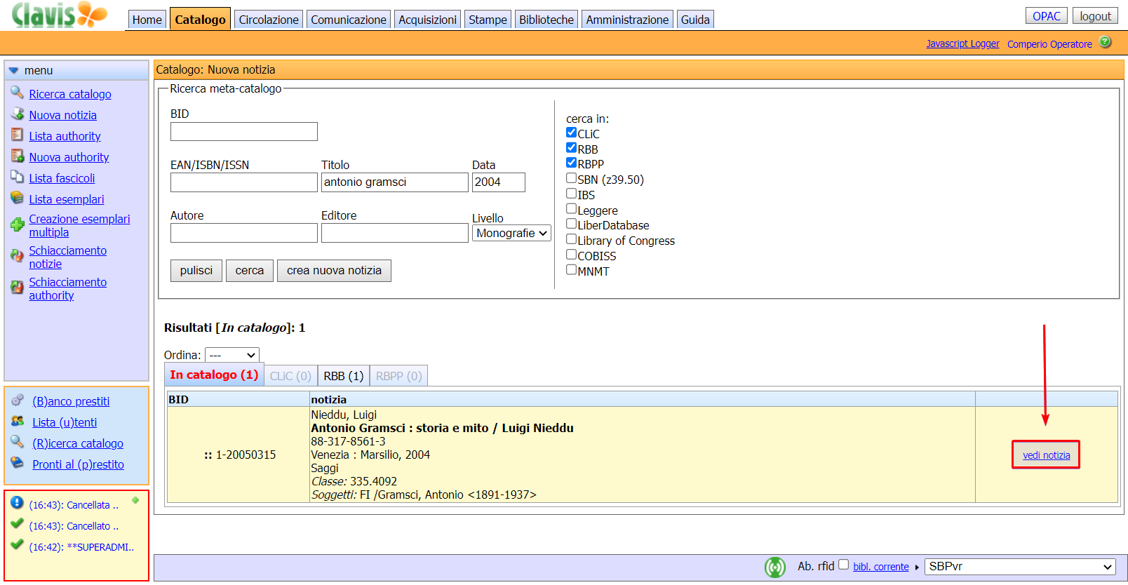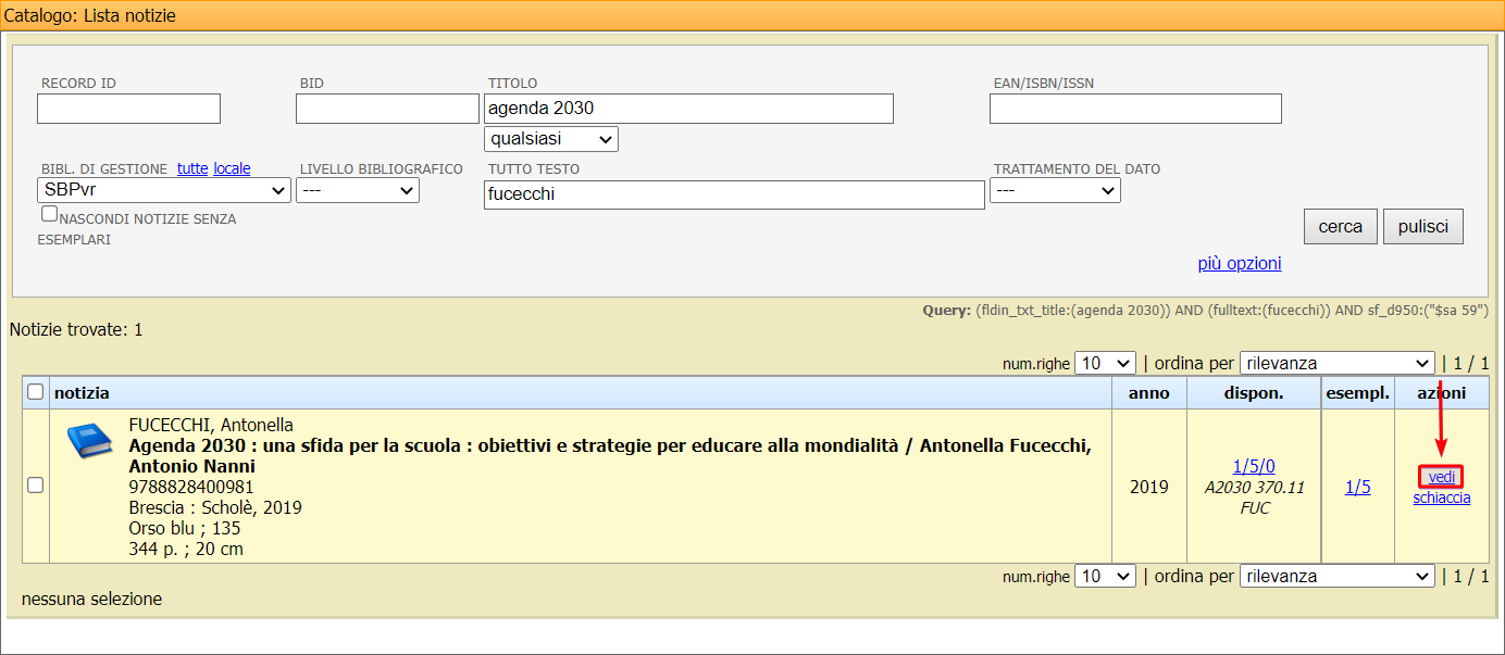 se la descrizione è presente nel proprio catalogo cliccare su vedi notizia;